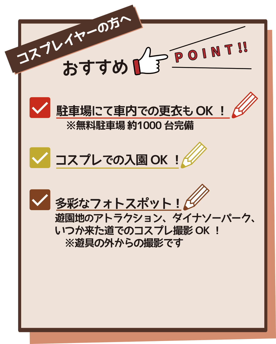 人気アーティストとのコラボでも話題の広島県NO.1スケールの遊園地「みろくの里」が今年もフクヤマニメの会場に!〝懐かしいのに新しい空間がエモい♪〟と評判を呼び、県内外から多くの若者が訪れる人気スポットです。絶叫マシンやライド、トラディショナルな遊園地アトラクションあわせて20種類以上、40体以上の実物大の恐竜が動く「ダイナソーパーク」、昭和30年代のレトロな街並みが話題の「いつか来た道」、オフロード体験ができる「ビッグビーバギー」など、キッズからオトナまで楽しめるスリルと興奮がいっぱいです♪当日はコスプレでの入園を大大大歓迎!!!多彩なアトラクションでコスプレ撮影を満喫できちゃいます。フクヤマニメに参加されるコスプレイヤーの皆さん、福山で最高・最強のフォトスポットへぜひお越しください☆彡